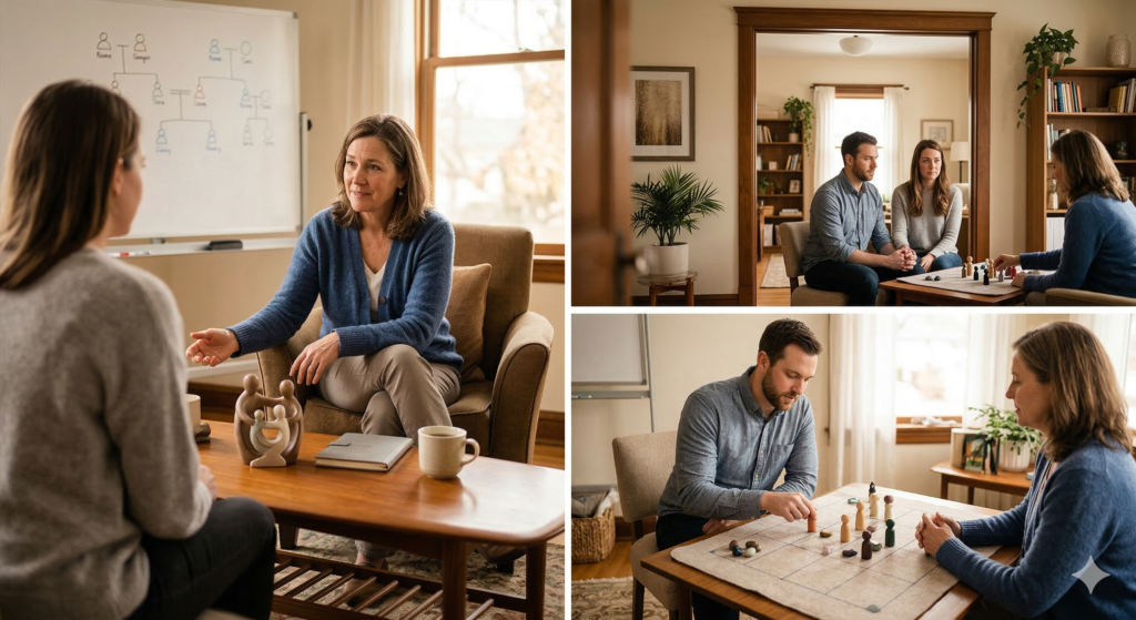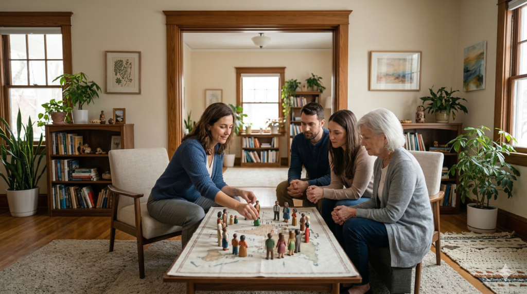 ➡️ Constelación Raíz de ParejaⓇ: En casos específicos, utilizamos esta herramienta para comprender el sistema y avanzar hacia un cierre consciente o una apertura a relaciones adultas.